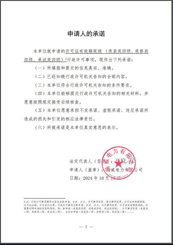 根据《承装(修、试)电力设施许可证管理办法《(发改委36号令)》及相关规定,我办于2024年12月13日完成许可证审批程序,决定准予许可申请,现公示如下: