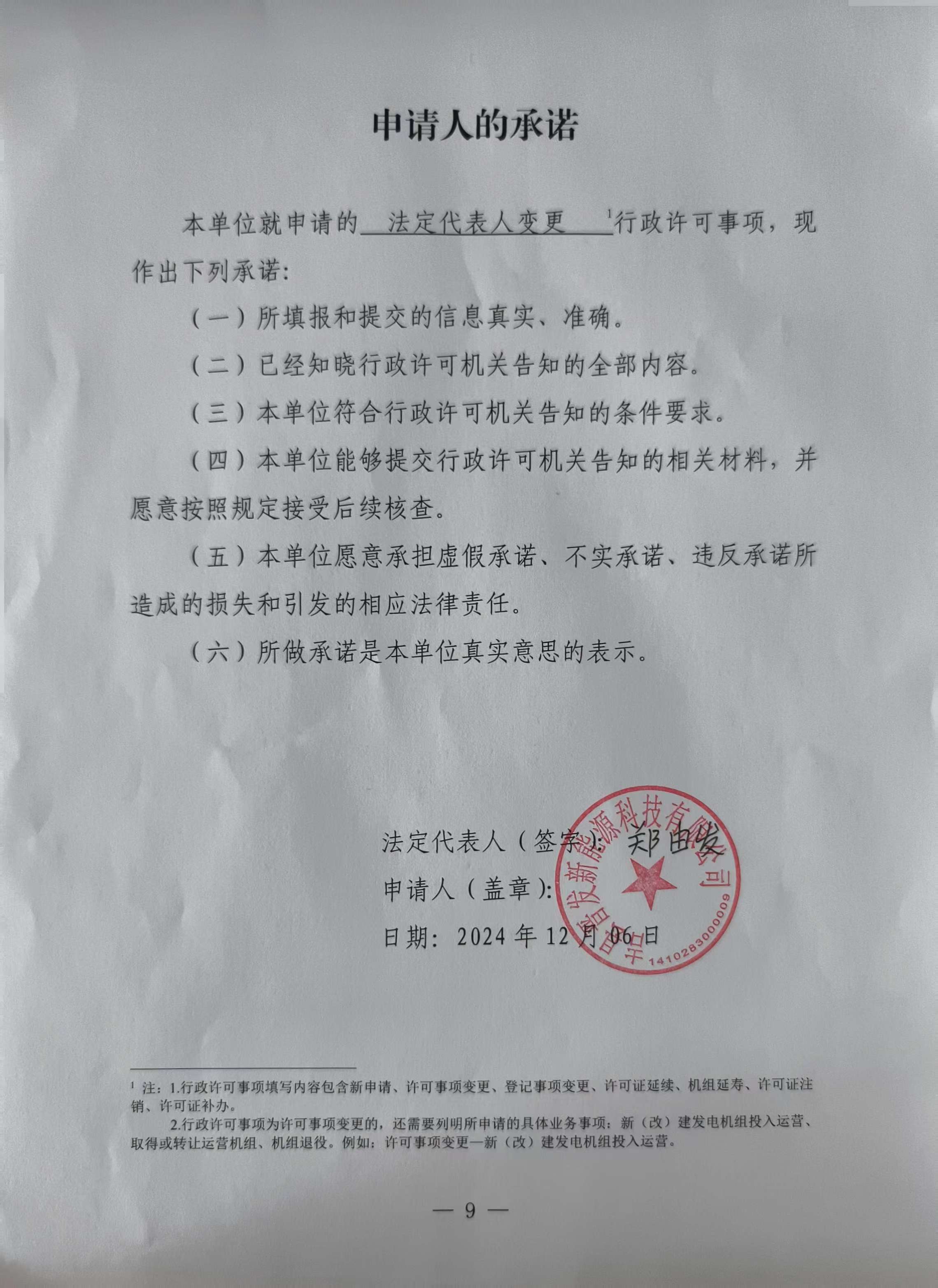 根据《电力业务许可证管理规定》《(电监会9号令)》及相关实施细则,我办于2024年12月16日完成许可证审批程序,决定准予以下企业登记事项变更,现公示如下: