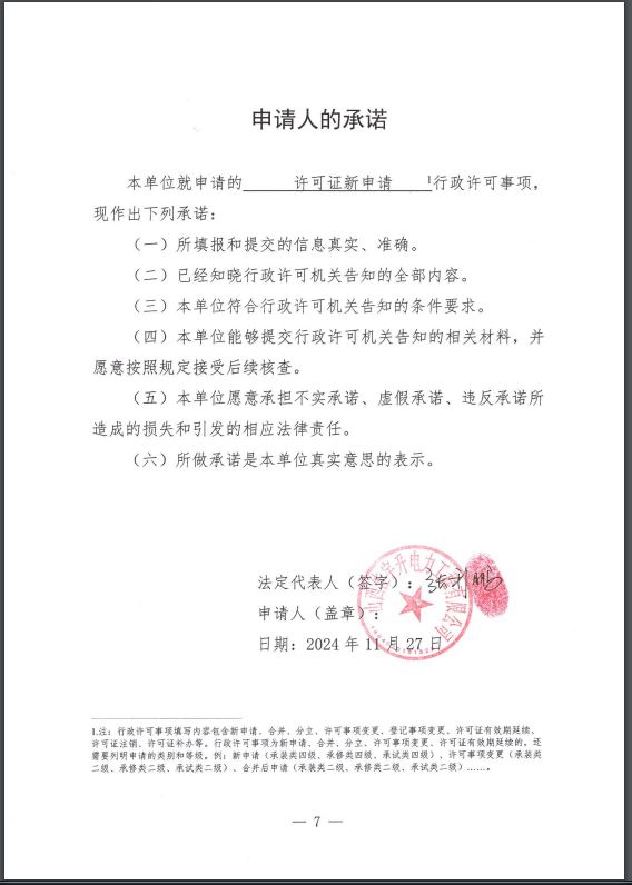 根据《承装(修、试)电力设施许可证管理办法《(发改委36号令)》及相关规定,我办于2024年12月25日完成许可证审批程序,决定准予许可申请,现公示如下: