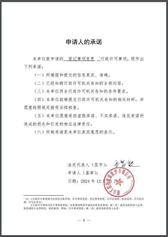 根据《电力业务许可证管理规定》《(电监会9号令)》及相关实施细则,我办于2024年12月25日完成许可证审批程序,决定准予以下企业登记事项变更,现公示如下: